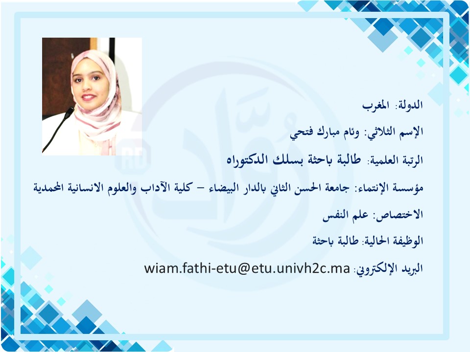 الرتبة العلمية: طالبة باحثة بسلك الدكتوراه